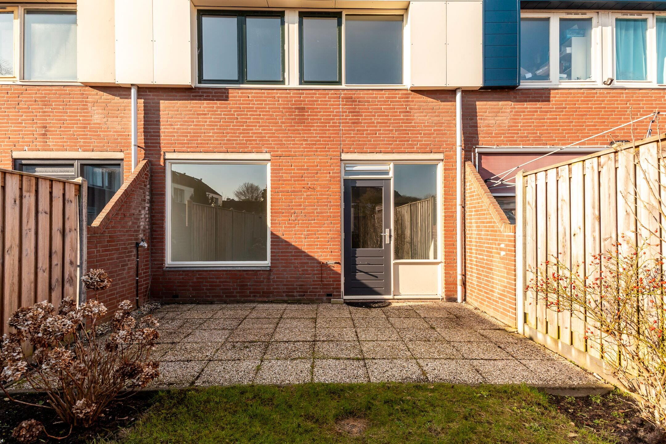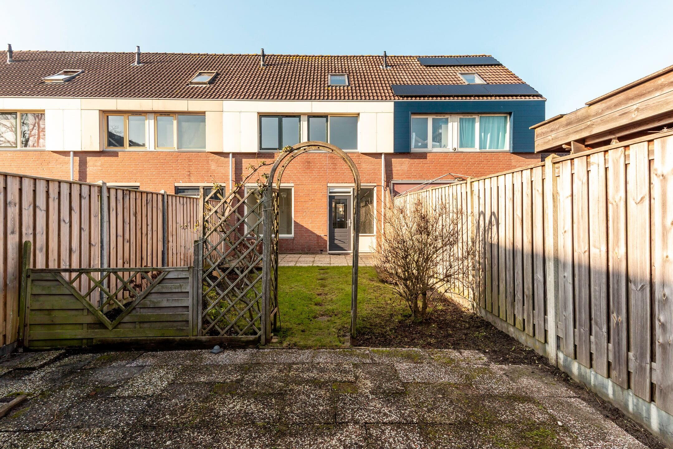 Tuin: Aan de voorzijde is de tuin voorzien van bestrating. Aan de achterzijde is de tuin voorzien van bestrating, een gazon, beplanting en een erfafscheiding met achterom. De achtertuin meet circa 11,5 meter diep en 6 meter breed en is gelegen op het oosten.